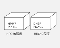 HRC40程度なら、快削鋼のDH2F・FDAC等の焼入鋼がございます。